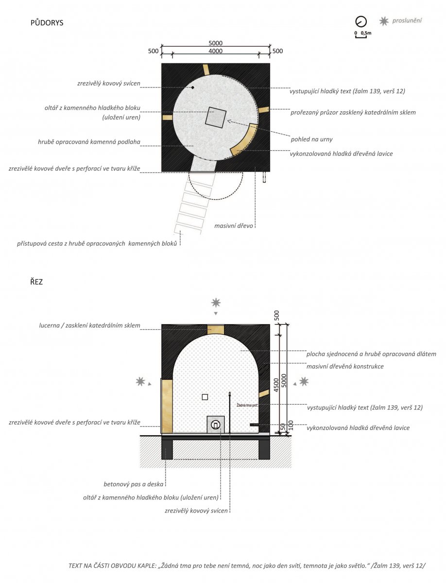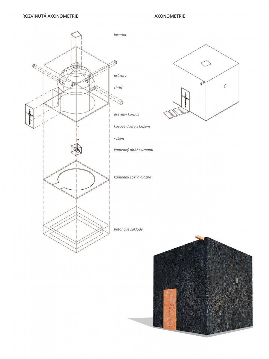 Naší představou je objekt (kaple), který v sobě spojí odkaz na násilný zánik obce s poselstvím naděje.