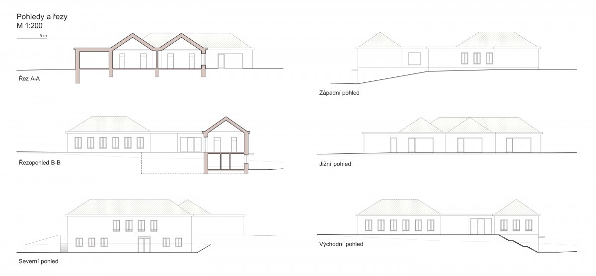 V maximální míře zachováváme stávající základy a obvodové stěny. V suterénu novější části snižujeme úroveň čisté podlahy. Všechny střechy jsou sneseny, vnitřní dělení je odstraněno. Jsou vybourány nové otvory. Stávající části budou zrevidovány a ochráněny proti zemní vlhkosti. Nově bude vystavěna z keramických tvárnic vnitřní dispozice, nově jsou řešeny skladby podlah, celý objekt je zastřešen novou žb střechou s profilací třech valbových střech. Tato deska slouží pro celkové ztužení objektu. Celý objekt je zateplen kontaktním zateplovacím systémem a omítnut. Římsy a plochy mimo třídy jsou hladké, plochy obepínající třídy jsou s omítkou strukturovanou. Výplně otvorů jsou řešeny jako dřevěné s barevným nástřikem a trojsklem a venkovním stíněním ve skrytých kastlících. Střecha je zateplena a opatřena fóliovou izolací, vystupující části (valbové střechy) jsou doplněny o minimální skladbu extenzivní zelené střechy ploché části střechy jsou rezervou pro možné umístění fotovoltaických panelů. Střecha je doplněna o světlíky.